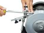 New locking screw to lock the Gouge Jig's rotation. This new and additional locking screw allows you to fix the Gouge Jig ’s rotary movement at the required location. With this new feature, it will be easier to maintain full control when sharpening carving tools, such as V-tools. The locking screw also facilitates grinding to a completely flat bevel on violin making knives and chip carving knives when using the MB-100 Multi Base and Tormek Diamond Wheels.